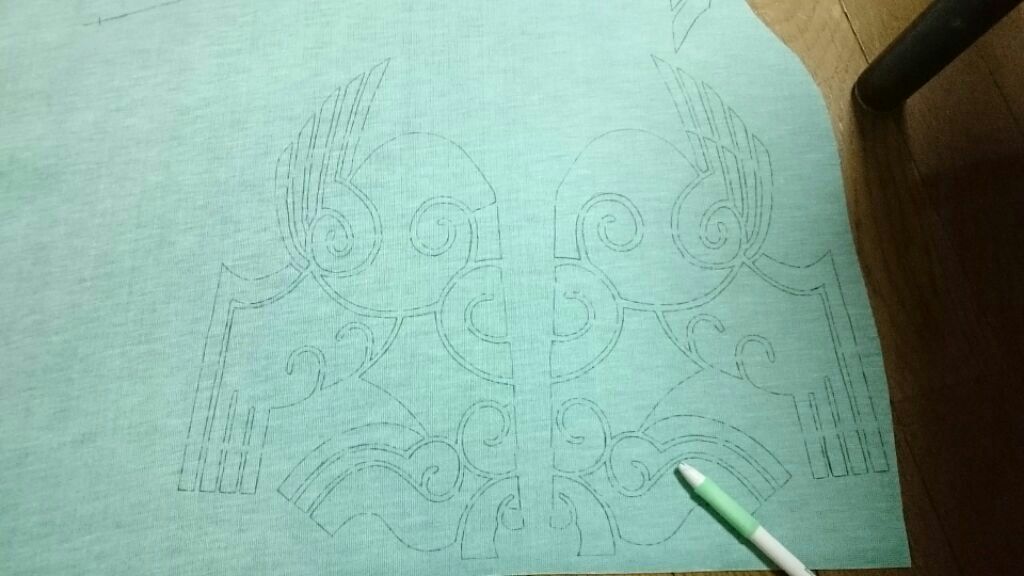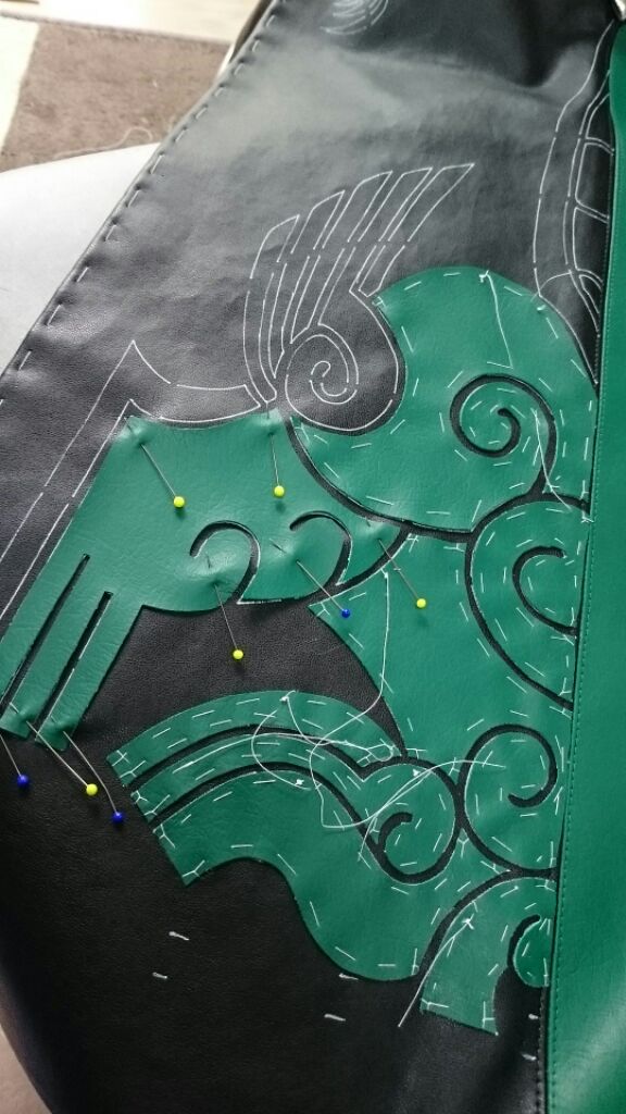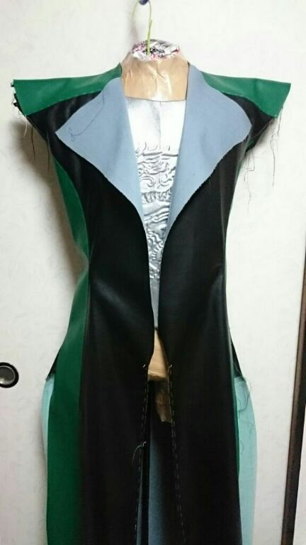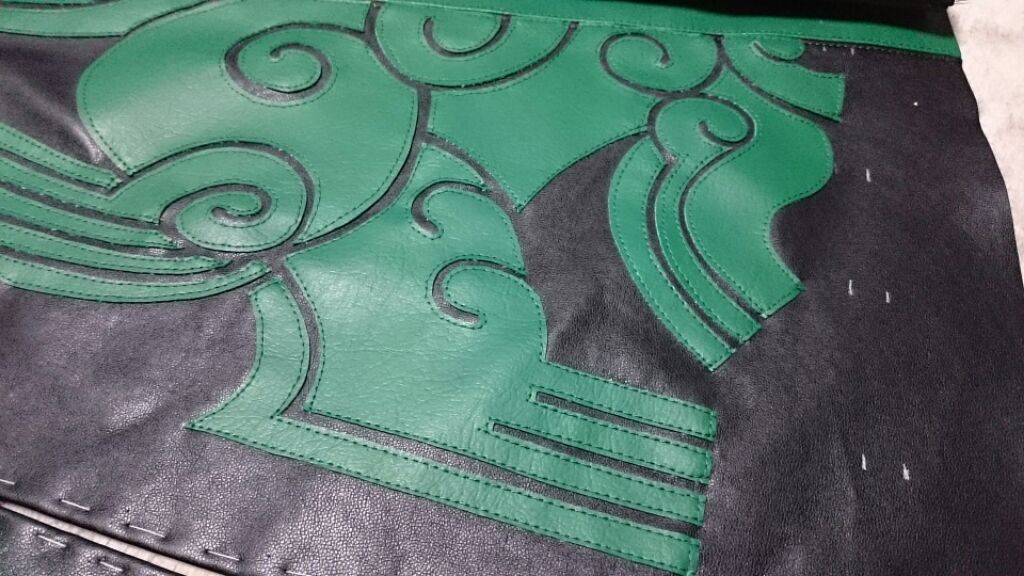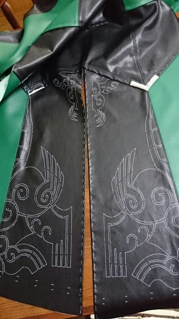この緑の合皮が固くて固くて···、着るものに使う用じゃないんでしょうね···。これだけでもめっさ時間かかった···;;