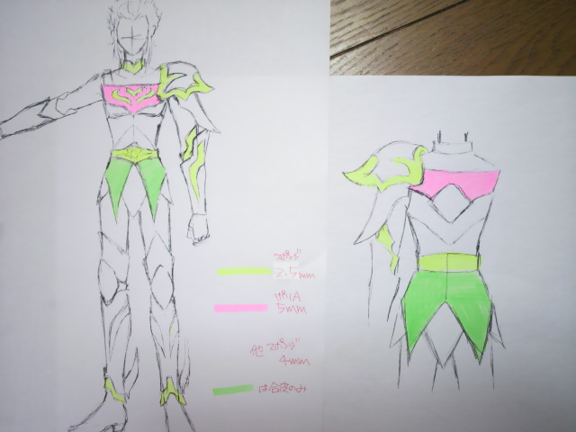 今回はアニメオリジナルのキャラなのでスッキリしたシルエットが出せるように2.5㎜が多めです。ただデザインがシンプルすぎるんですよねー;;飾りが少ないから楽なんですが粗が目立ってしまうのが難点です。まぁ、礼服着ちゃうからほとんど見えなくなるんですけどネ!!