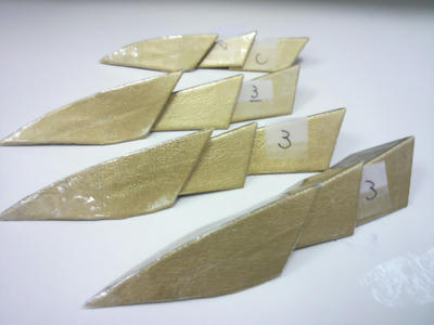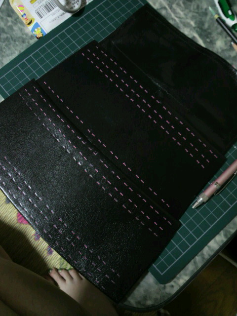 2mmのライオンボードに合皮を貼って、紐通す所印つけて
