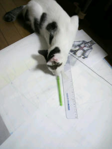 服の型紙作ろうとしたら邪魔されました(´ω`)噛むでない!
