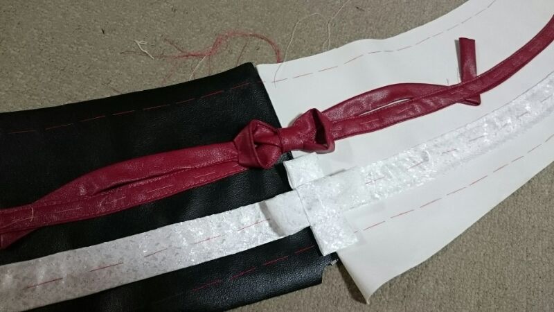 仮縫いするだけで針3本が犠牲になりました;;頑丈な太い針使うとなかなか刺さらない上、跡が目立つので、細いの使っていたのが仇になりました;;合皮が重なってるとすんごい守備力ですね(^ρ^)ルカニ!!