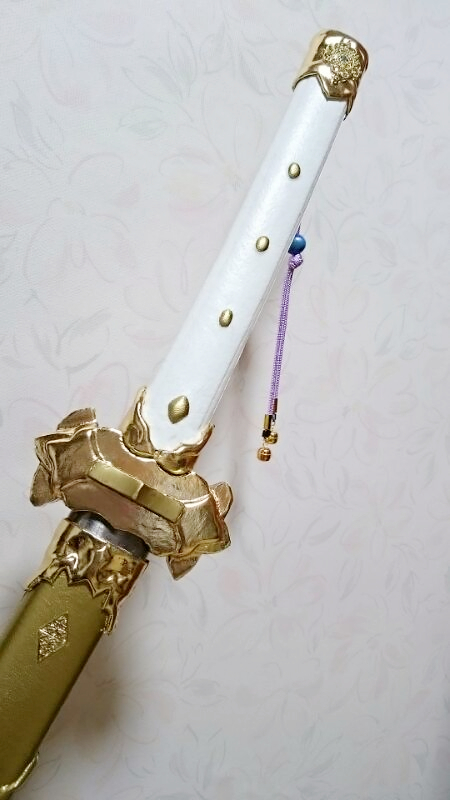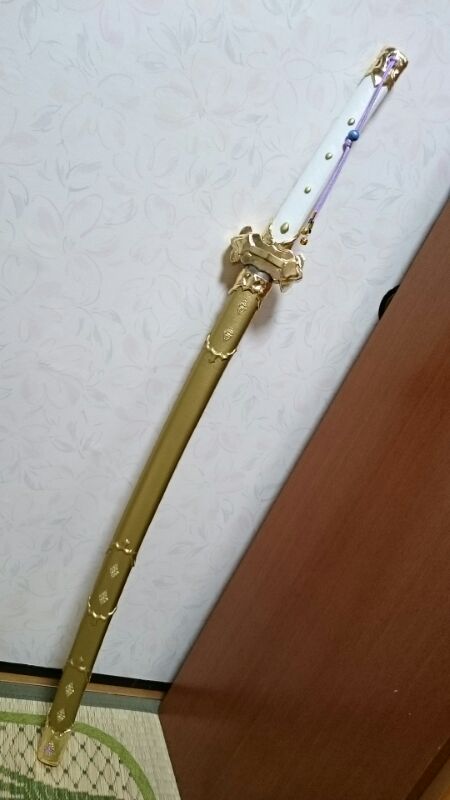 どうしても腰からぶら下げたくて、軽いアルミ刀を買いまして、そこから加工しました!