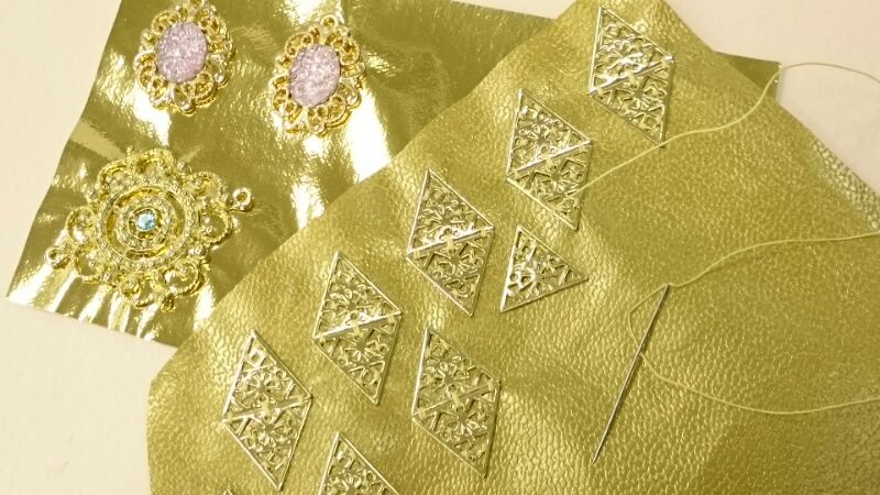 合皮に縫い付けてー、ボンドでくっ付けました。