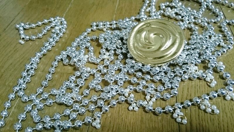 に、銀色の飾り付けてー。ちなみにこれクリスマス用の飾りです!6mで100円!!超お得( ´﹀` )